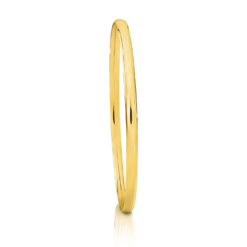 9ct yellow gold solid bangle 4mm x 64mm round shape.