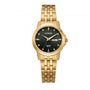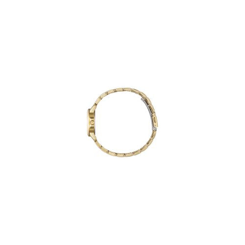 This gorgeous watch ensures comfort does not come at the expense of beauty. Slim design elements fused with light yet durable stainless steel construction make this watch an everyday accessory. With an easy to read dial complemented by gold tone features, this day/date resilient model will be perfect for any occasion.27mm Gold-Tone Stainless Steel Case / Gold-Tone Adjustable Stainless Steel Bracelet / Black Textured Dial / Japanese Quartz Movement / Scratch Resistant Mineral Crystal / Stainless Steel Caseback / Water Resistant to 50 Meters
