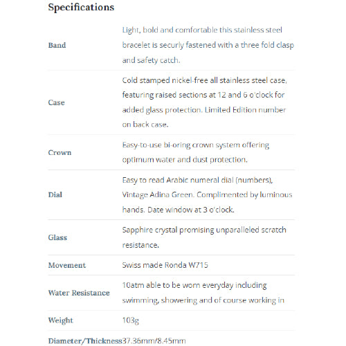 As with all Adina watches is completely designed and assembled by hand in Australia.
