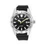 Inspired by the aesthetic of classic dive watches, this ever-reliable watch uses black on gold to dramatic effect. With a black face with date display framed by silver toned bezel and case its look is chic and refined, while the addition of the comfortable black polyurethane strap adds to the practicality of this versatile watch. Powered by a Quartz movement, it has a 3 year battery life and WR100/10bar, making it the accessory for the busy modern man who values style and performance.
